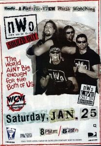 Already this is a crazy show. The new World order come into the arena hanging on the back of dump trucks along with this huge obnoxious police and fire truck escort. It’s just WAY over the top, but that’s the point.